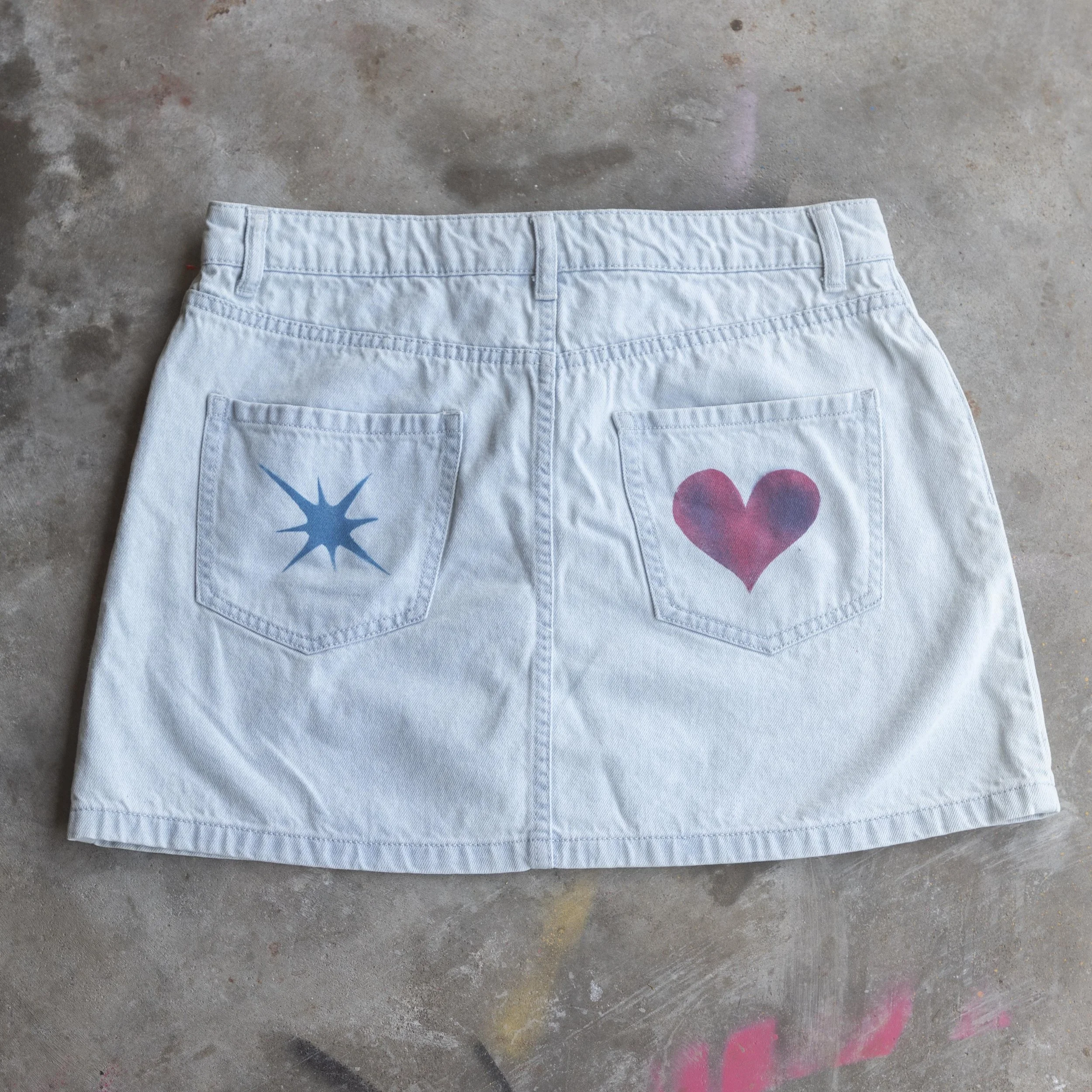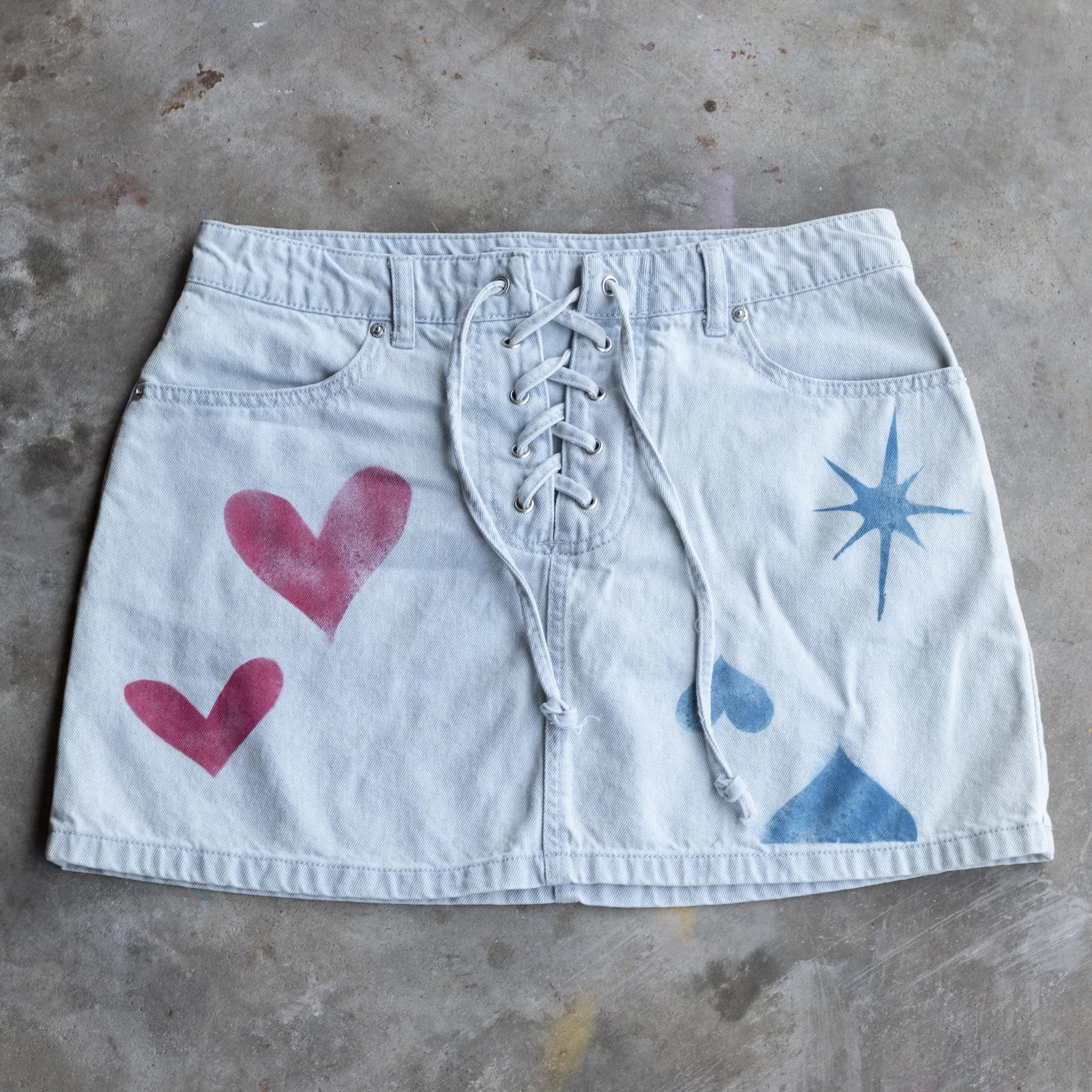 Image 1 of 3 Image 2 of 3 Image 3 of 3 Sparkles/Hearts Lace Skirt $30.00 Waist 29 Laced up denim skirt with Hearts n Sparkles Quantity: Add To Cart Added! Waist 29 Laced up denim skirt with Hearts n Sparkles